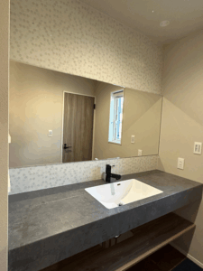 新築戸建て洗面台 鏡の取りつけ オーダーサイズ